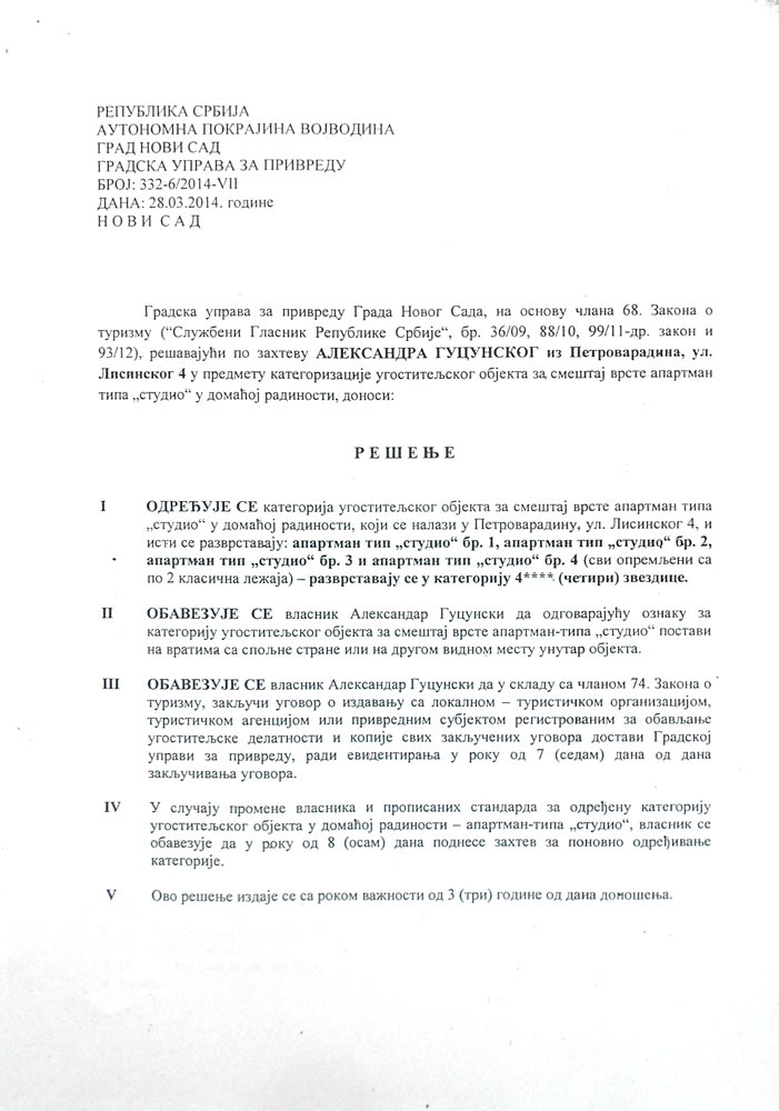 Srdačno Vaši, Fortress apartmani Novi Sad!